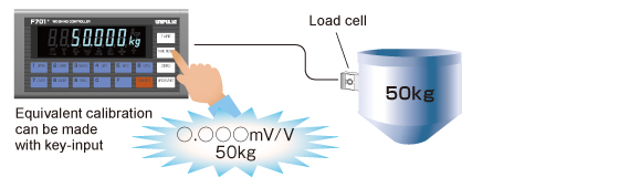 只需通過按鍵輸入額定容量并將稱重傳感器輸出至F701 +,即可輕松進行等效校準。