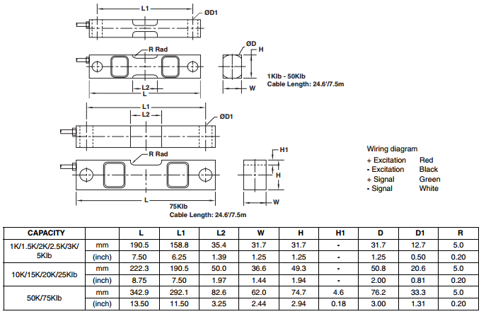 1,1.5,2,2.5,3,5,10,15,20,25,50,75Klb |